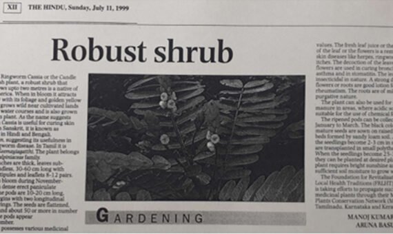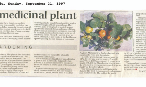 I continued my connection with plants in various ways more vigorously by growing them wherever I worked. Besides, writing about them in scientific journals, in daily newspapers, writing project reports and finally did Ph.D. and written books on plants to create awareness about goodness of plants to all. Some of the articles those published in daily National newspapers like The Hind, The New Indian express is presented here.